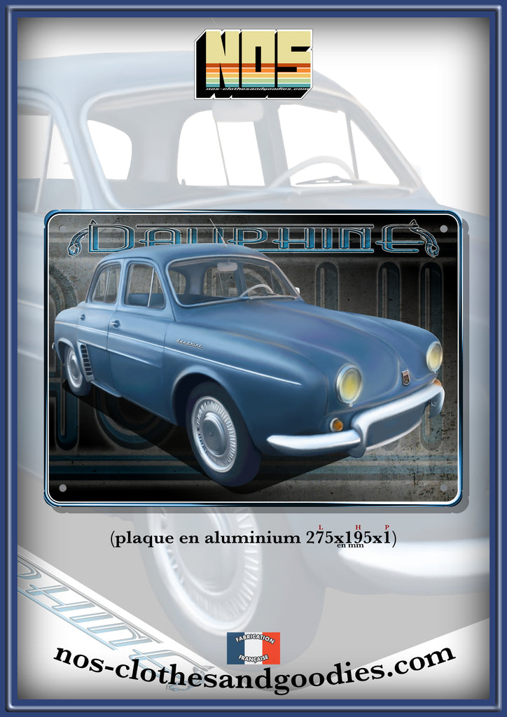 Plaque métal décorative Renault Dauphine bleue