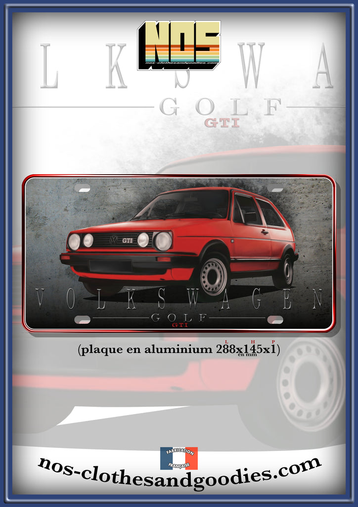 plaque métal type immatriculation us VW Golf 2 GTI rouge