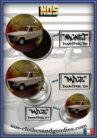 Badge / magnet / porte clé décapsuleur Renault R6 beige 1977