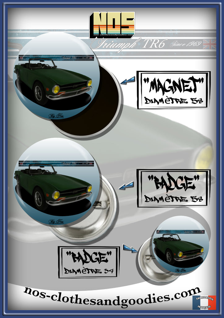 Badge / magnet / porte clé décapsuleur Triumph TR6 verte
