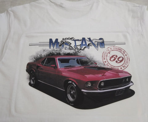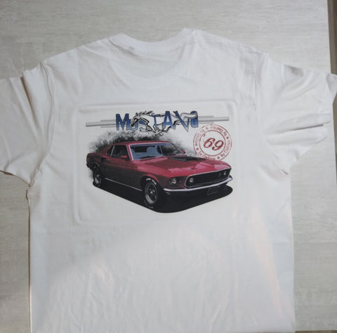 Commande client pour faire plaisir à un bon ami, personnalisation tee shirt avec sa Ford Mustang