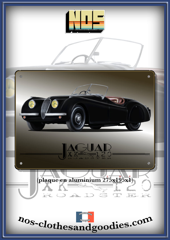 Plaque métal décorative Jaguar XK120 roadster noir 1951