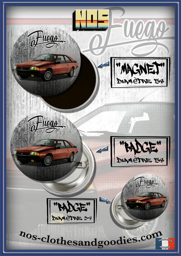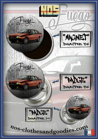 Badge /Magnet / porte clé décapsuleur Renault Fuego rouge 1984