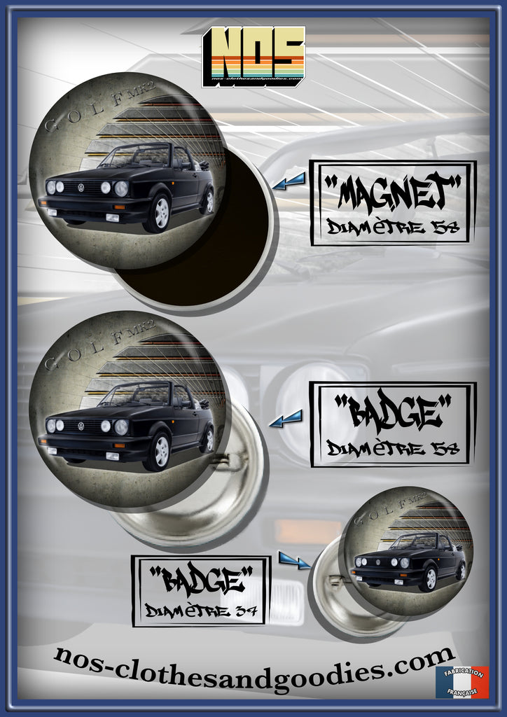 Badge /magnet / porte clé décapsuleur VW Golf 2 Cabriolet noire