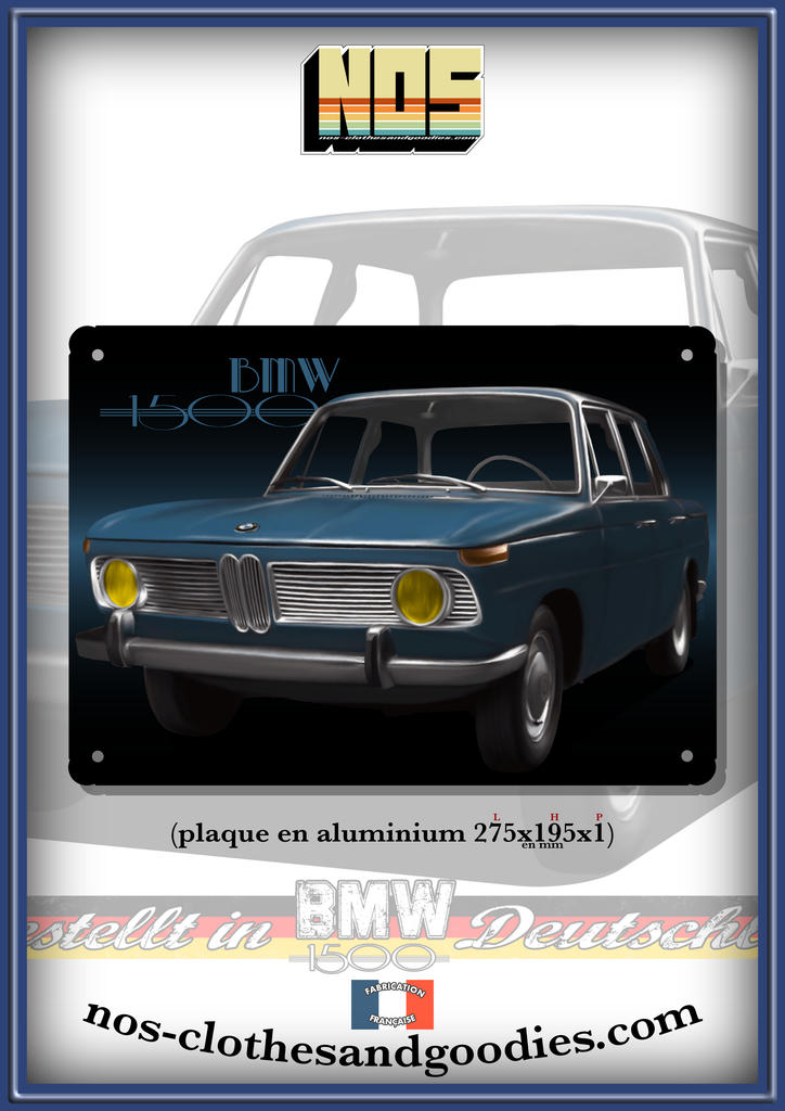 Plaque métal décorative BMW 1500 bleue