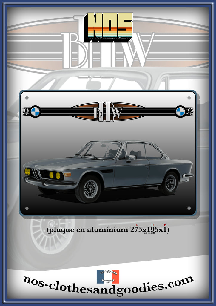 Plaque métal décorative BMW E9 3.0 CS 1973 grise
