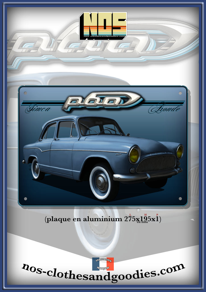 Plaque métal décorative Simca aronde P60 bleu 1960
