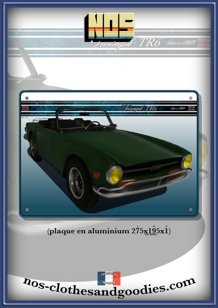 Plaque métal décorative Triumph TR6 verte