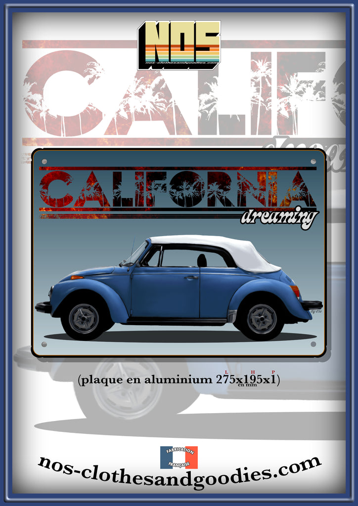Plaque métal décorative VW cox cabriolet 1303 usa super beetle 1979 california