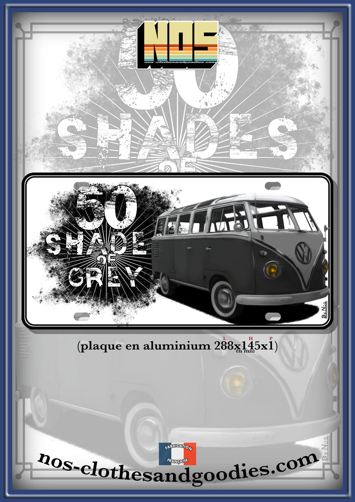 Aluminum US registration plate VW combi T1 split 50 shades of gray