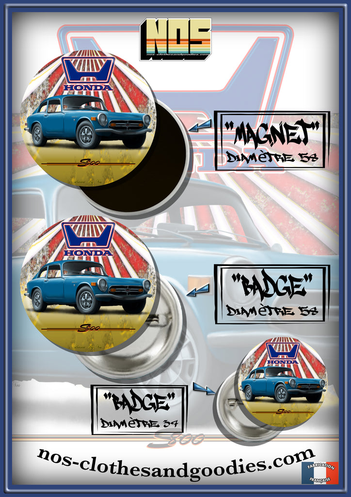 Badge / magnet / porte clé décapsuleur HONDA S800 bleue