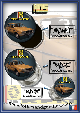 Badge /Magnet / porte clé décapsuleur Renault 12 marron 1977