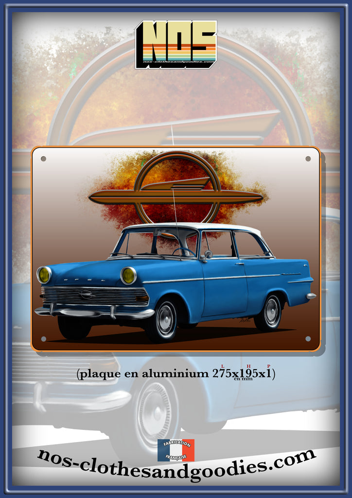 Plaque métal décorative Opel Olympia Rekord P2 bleue 1960-62