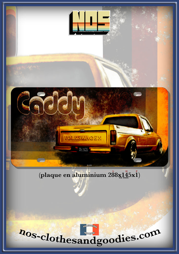 plaque métal type immatriculation us VW caddy orange'80