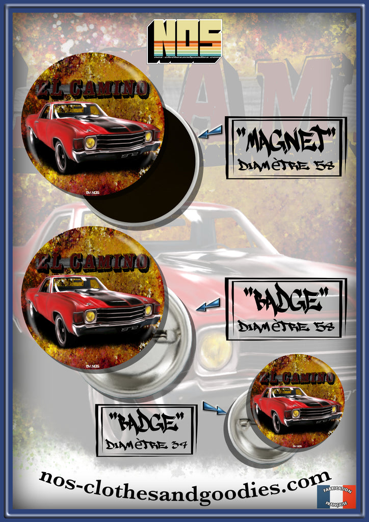 badge/magnet/porte clé décapsuleur Chevrolet el camino 1972
