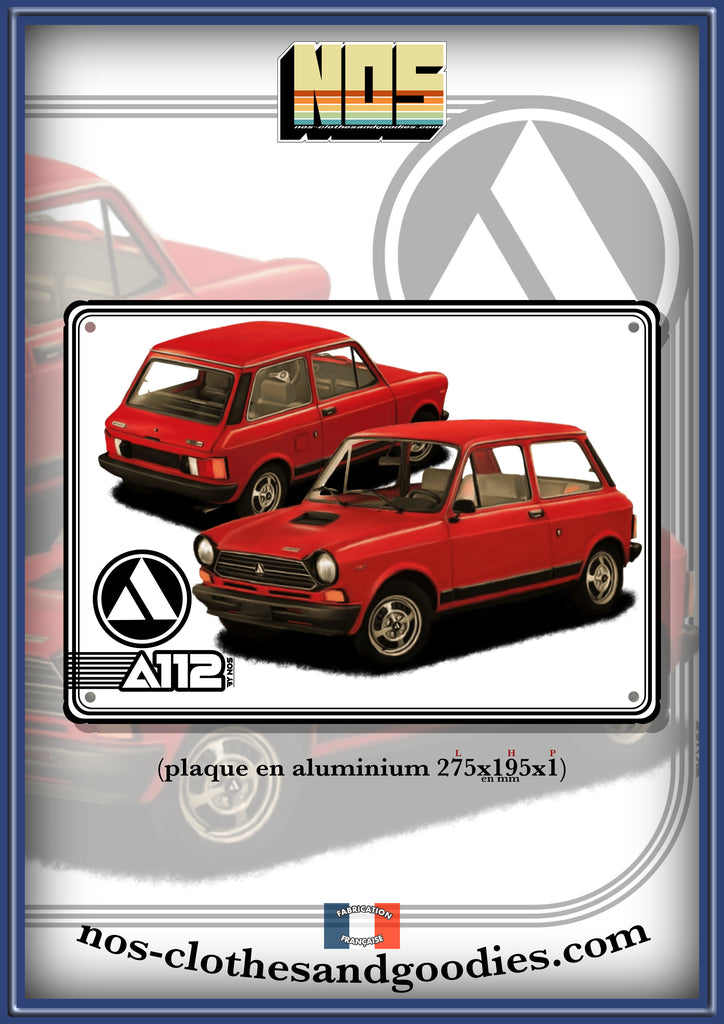 Plaque métal décorative Autobianchi A112 rouge av/ar