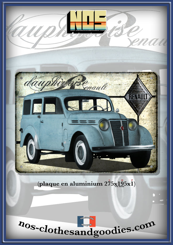 Plaque métal décorative Renault Juvaquatre dauphinoise vert gris