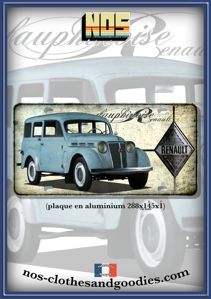 plaque métal type immatriculation Renault Juvaquatre dauphinoise vert gris