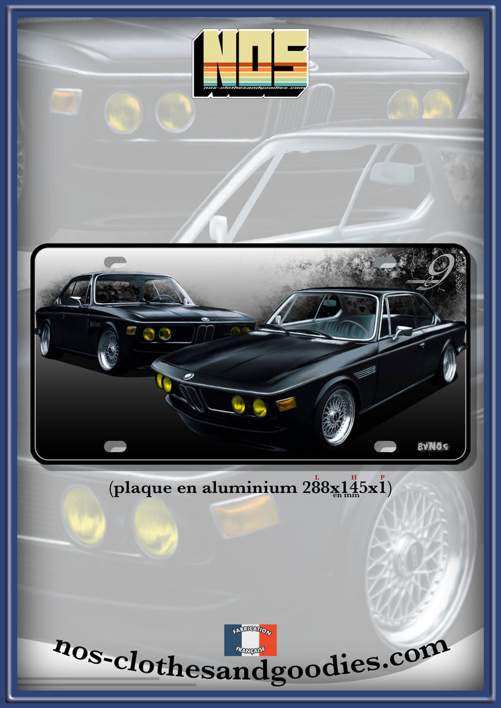 plaque métal type immatriculation us BMW E9 3.0CSI 2800 noire avant