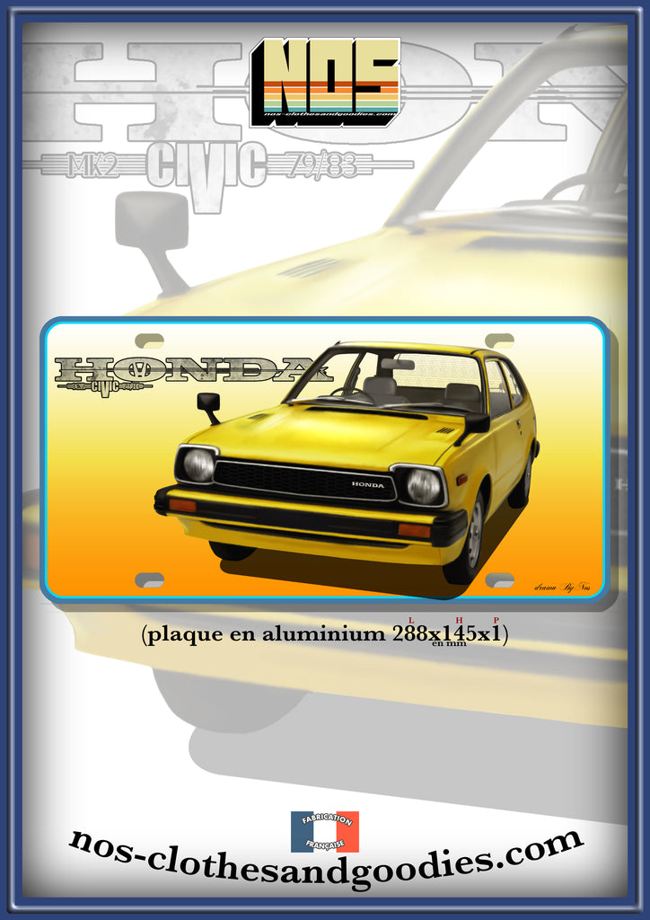 plaque métal type immatriculation us HONDA civic MK2 1300 Jaune