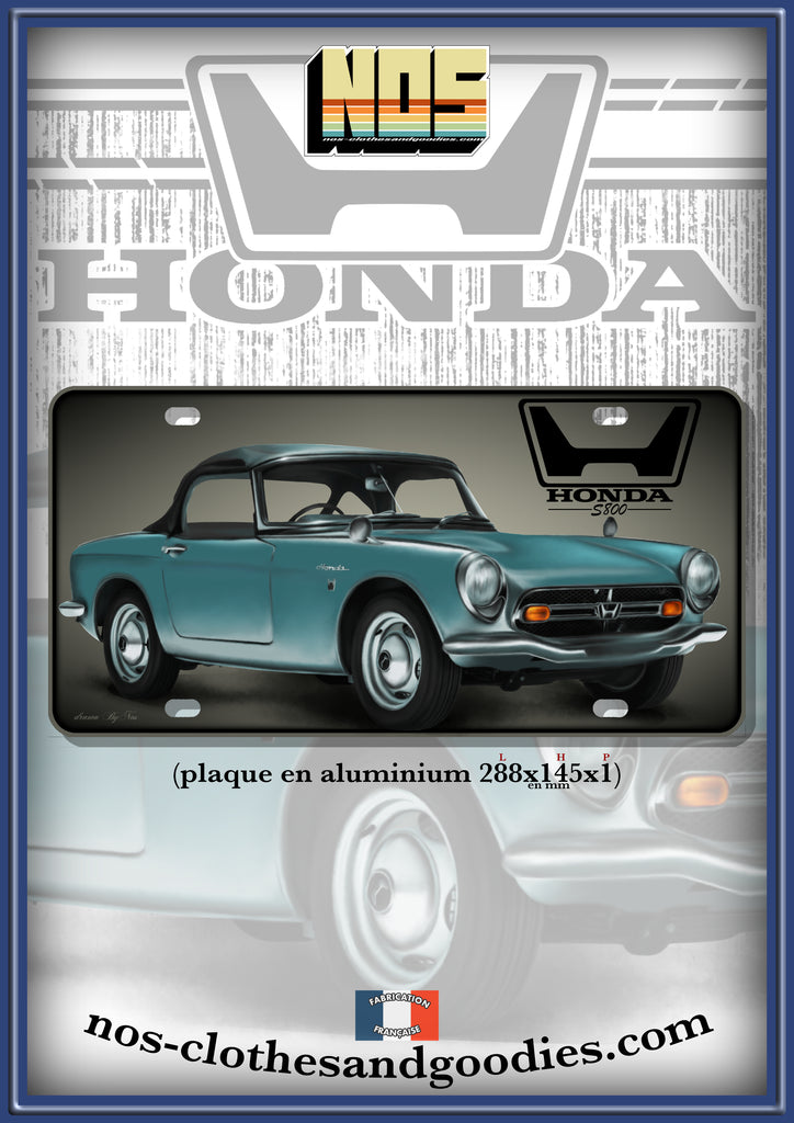 plaque métal type immatriculation us HONDA S800 verte décapotable