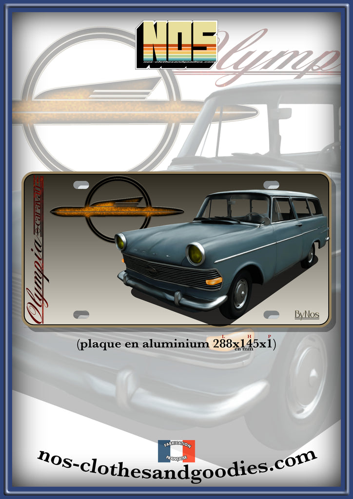 plaque métal type immatriculation us Opel Olympia P2 caravan 1962
