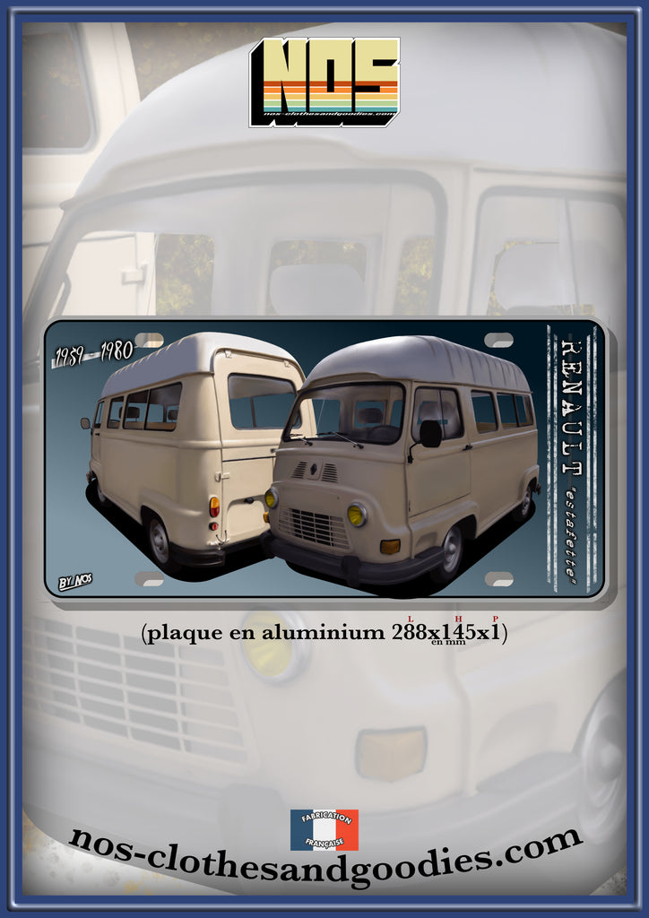 plaque métal type immatriculation us Renault Estafette ivoire av/ar