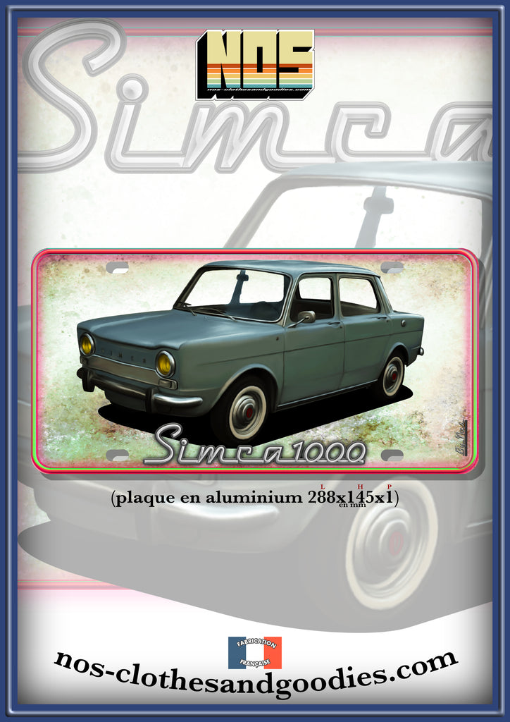 plaque métal type immatriculation us Simca 1000 1963 verte