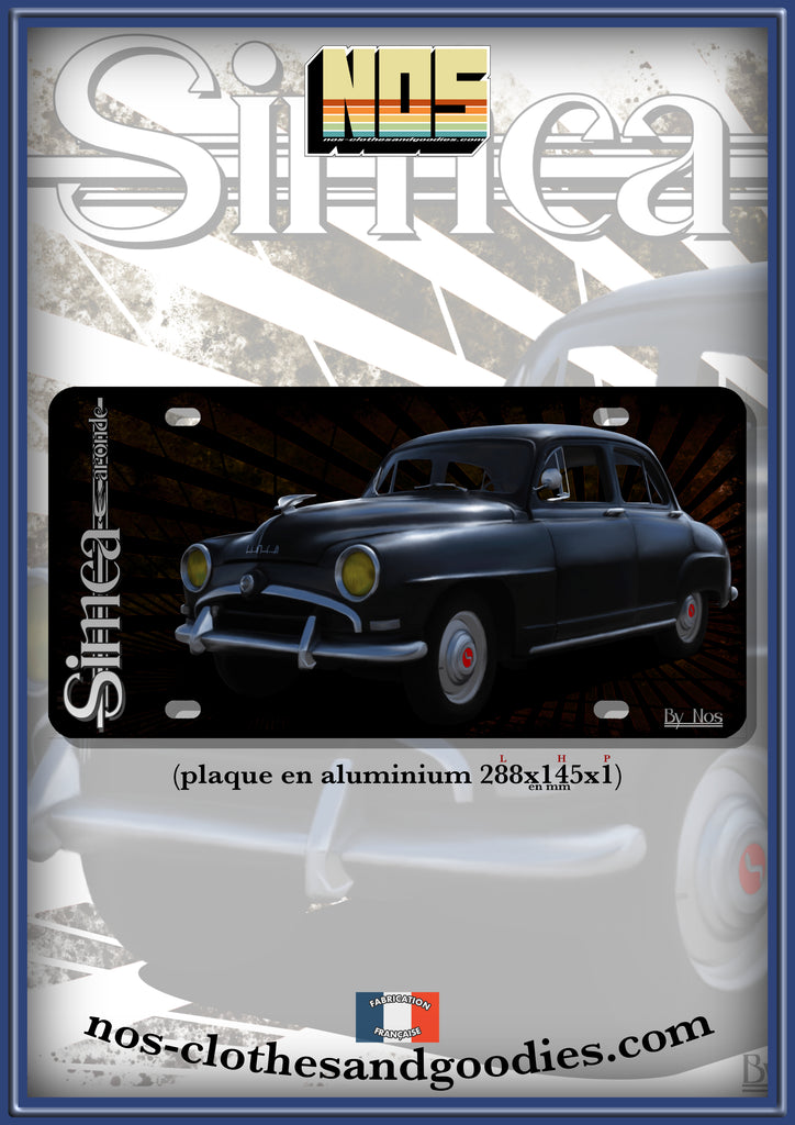 plaque métal type immatriculation us Simca Aronde noire