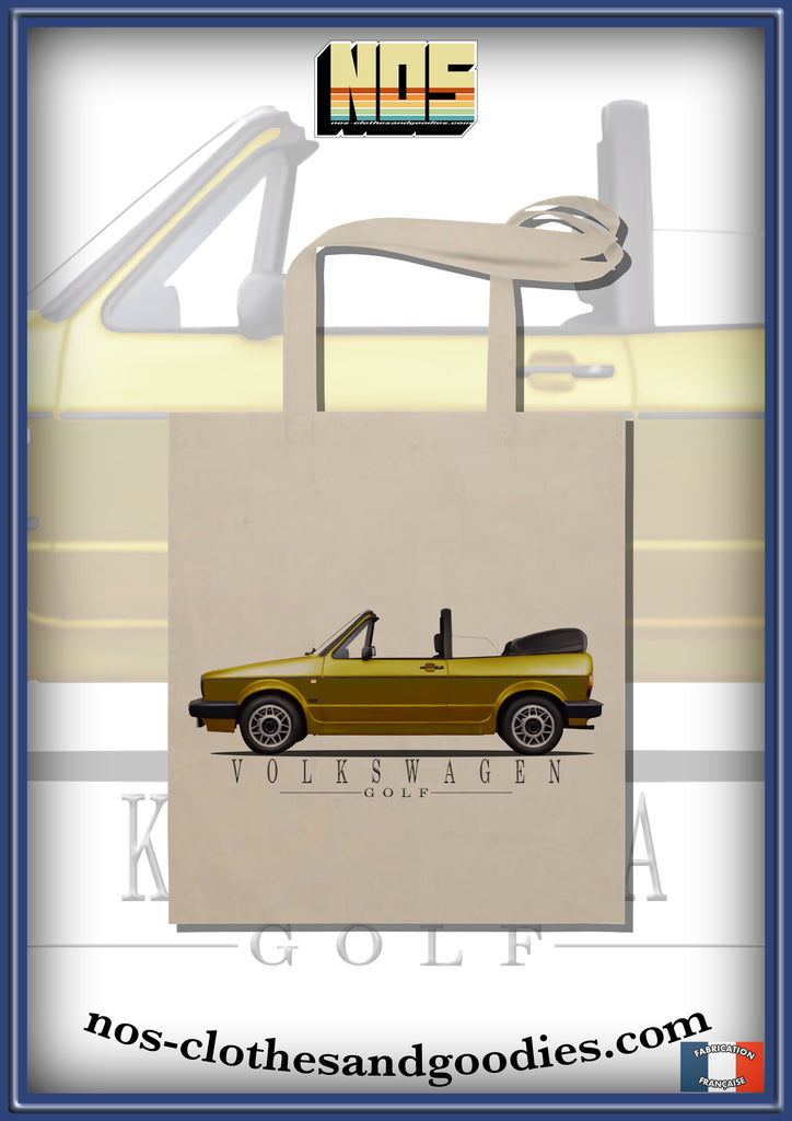 Tote bag VW Golf 2 GTI cabriolet jaune profil